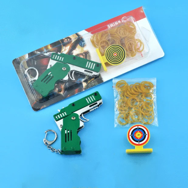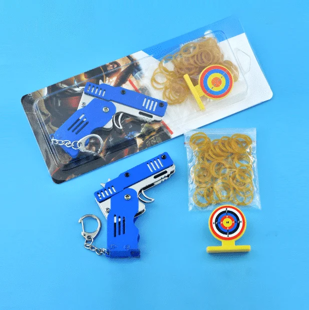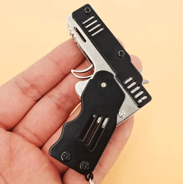 Viso metalo mini sulankstomas guminės juostos žaislinis raktų pakabukas turi šias produkto savybes: