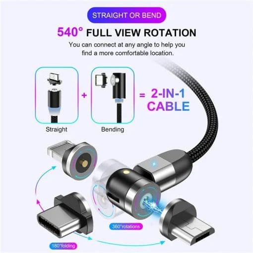 - Pavadinimas: dvigubas 360° magnetinis kabelis