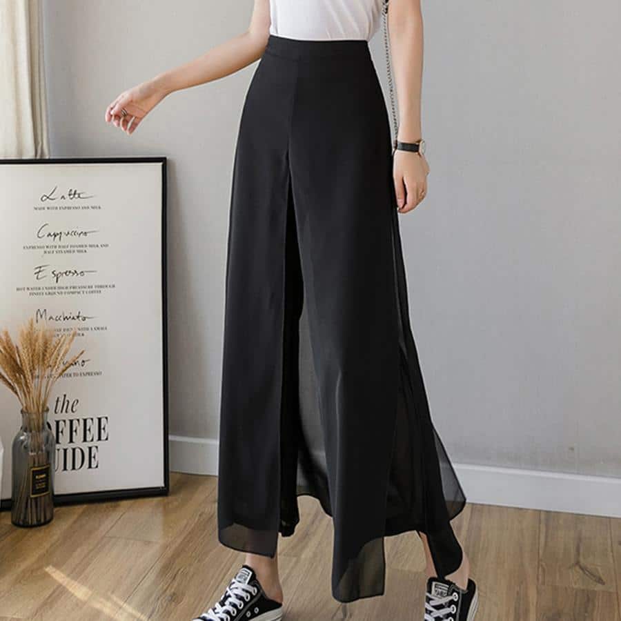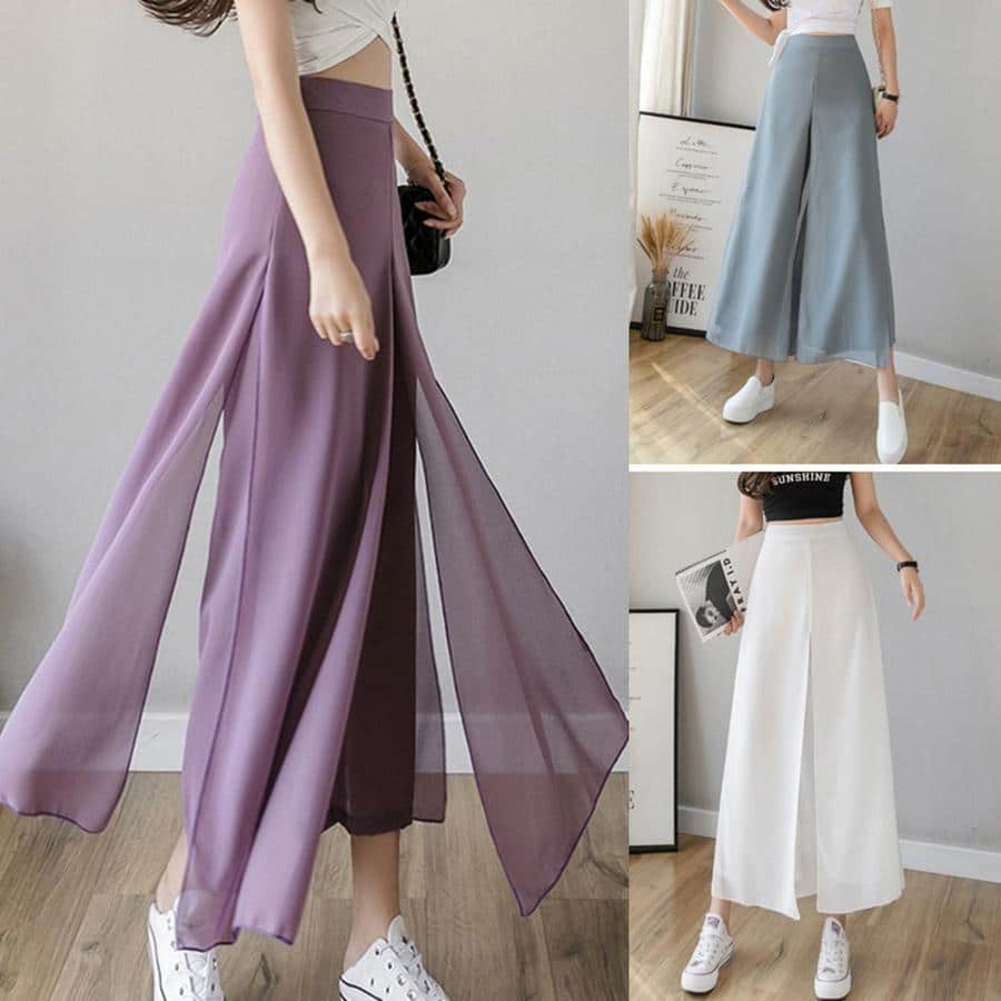 Plečias kelnes iš ledo šilko šifono